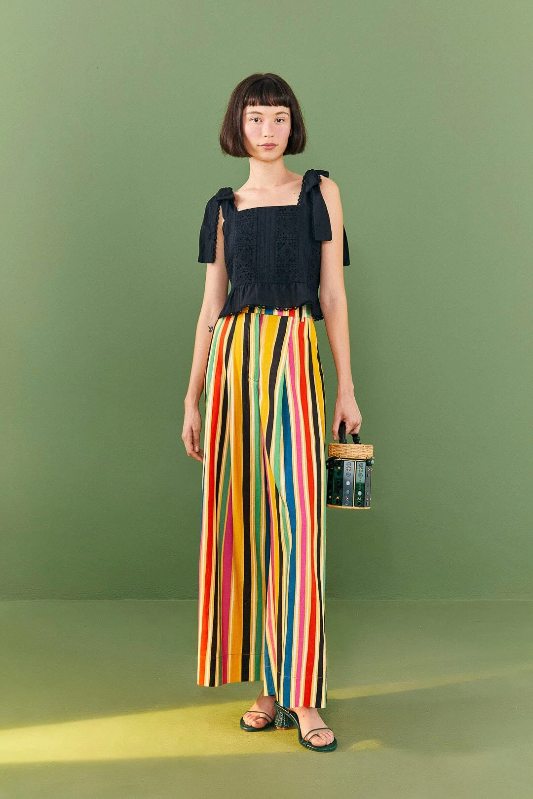 Get ready to elevate your schedule one solid-but-bold style at a time! The Black Lace Top lands here to keep all your bottoms company (printed or not!) with its effortless silhouette and lace detailing. That’s true it matches everything in your wardrobe, but pairing your new top with the Rainbow Stripes Pants will drop some jaws around. Invite also your cool shoes, from sneakers to mules to heels, and go have fun everywhere!