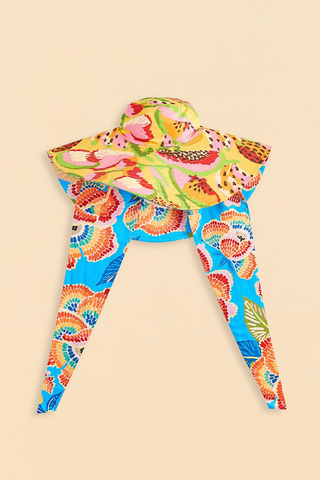 Get ready to enjoy cheerful moments: the Drewdrop Spectrum Hat has a wide, slouchy brim to protect you and add a charming accent to your sunshine-ready looks at the same time. It’s finished with self-tie straps to adjust around your face.