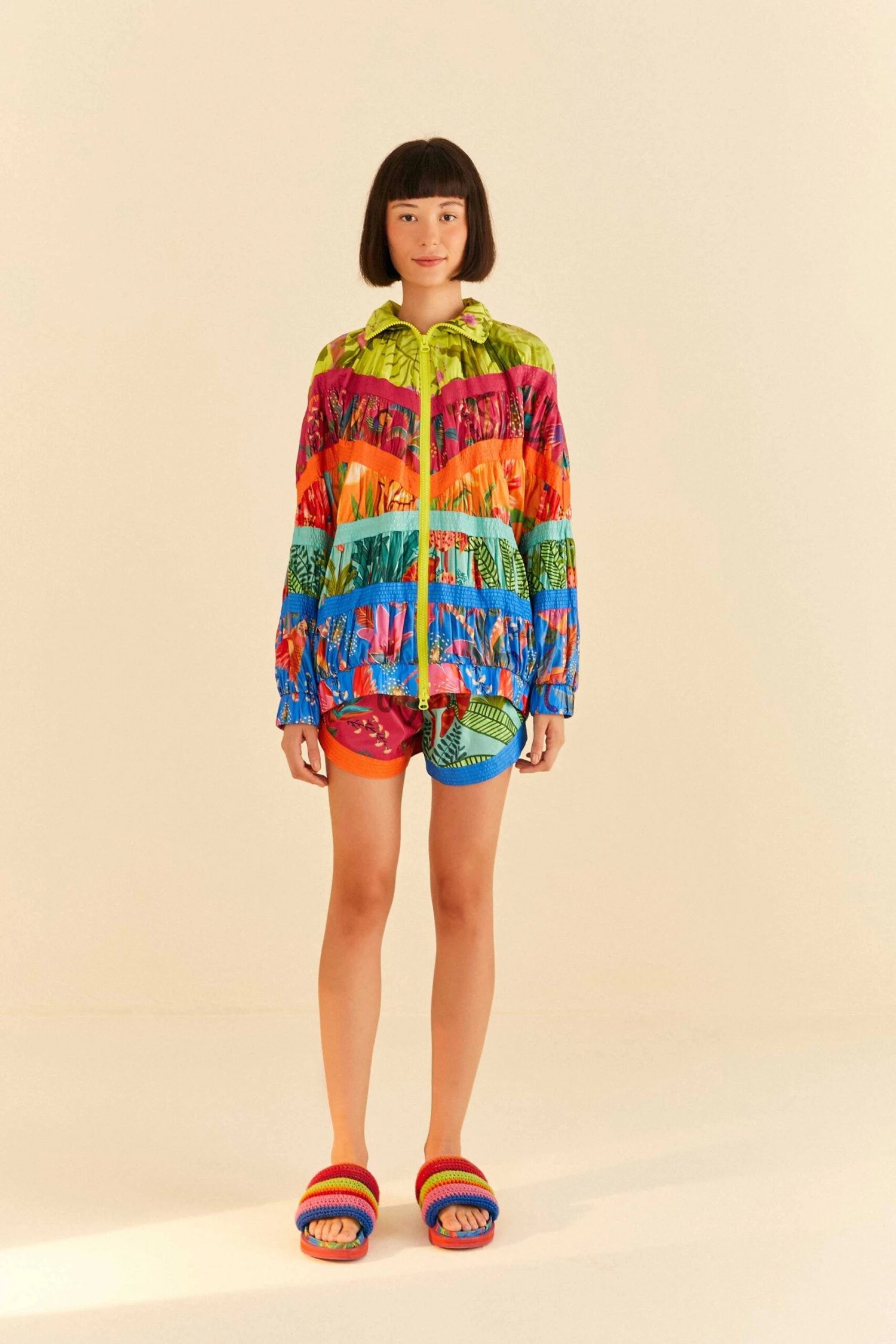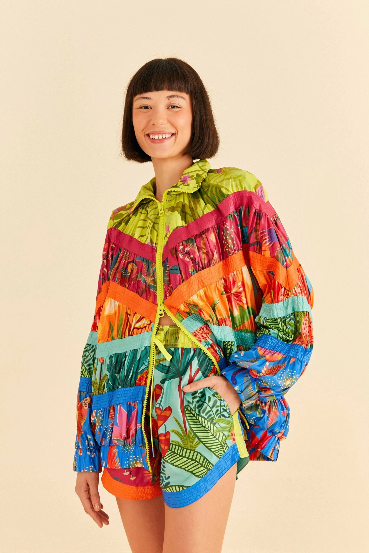 Sporty meets fun to keep you moving everywhere! Meet the Mixed Prints Nylon Shorts that will walk you from errand-running moments to relaxing ones in no time. It features the coziest fit with an adjustable waistline and versatile pockets, besides a mix of tropical motifs to make you stand out from the basic crowd. Looking for the coolest match? We think you’re gonna love bringing the Mixed Prints Windbreaker on to spread colorful joy everywhere <3 Move, baby, move!