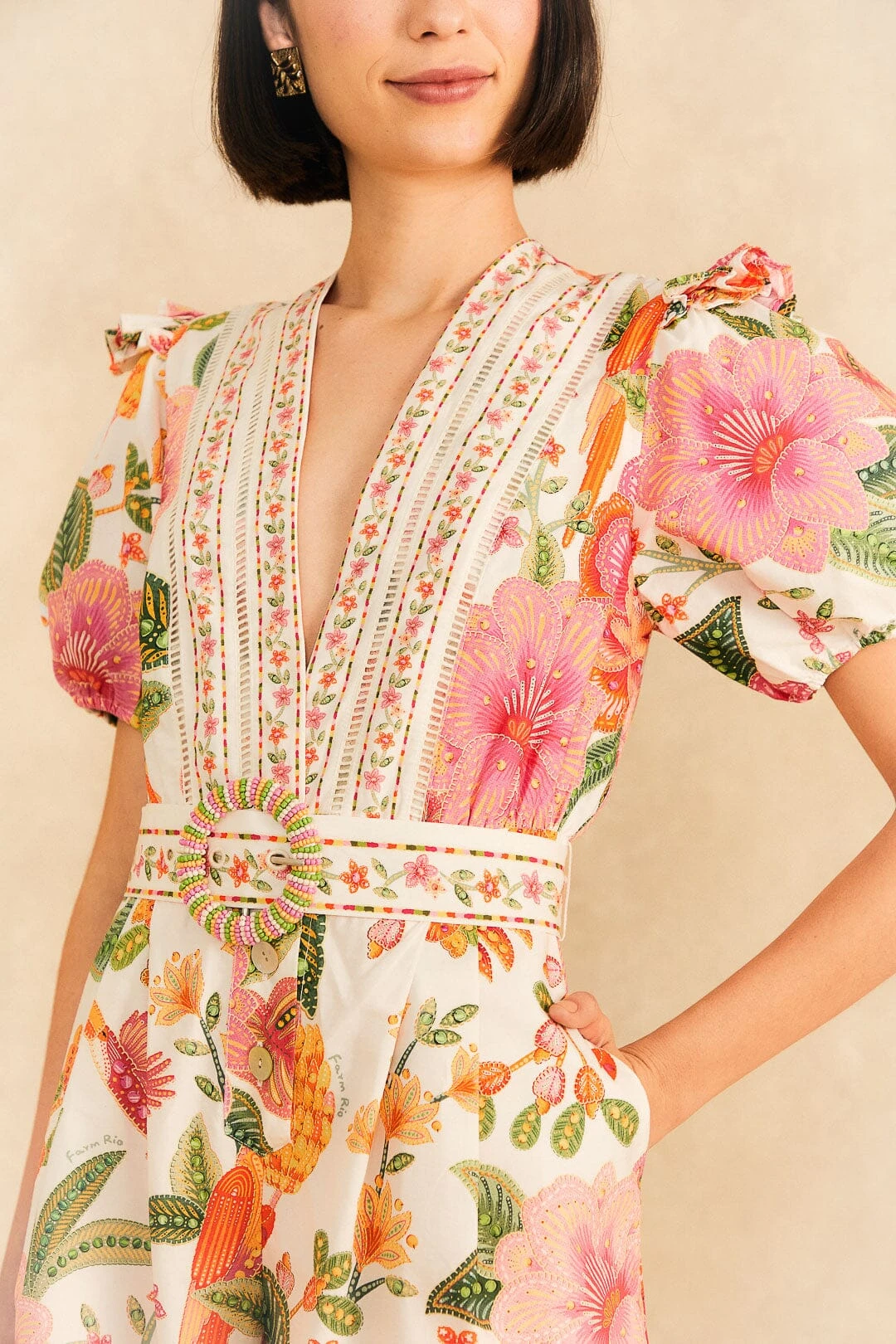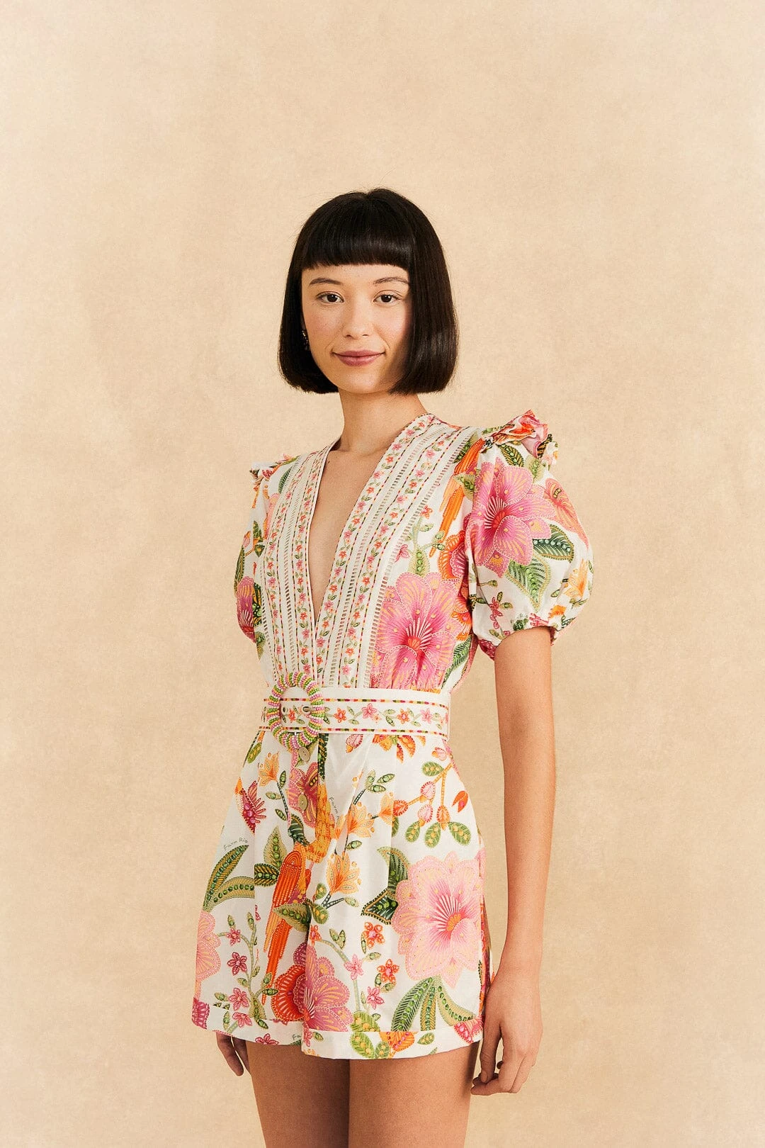 This is what we call an effortless Summer style. The Off-White Macaw Bloom Organic Cotton Romper is the fresh match for all your solar plans with its one-of-a-kind print, a plunging neckline, a belt with a beaded buckle, and the coolest length to show some legs and bold shoes. Isn’t it the sun-filled one piece your wardrobe was missing?