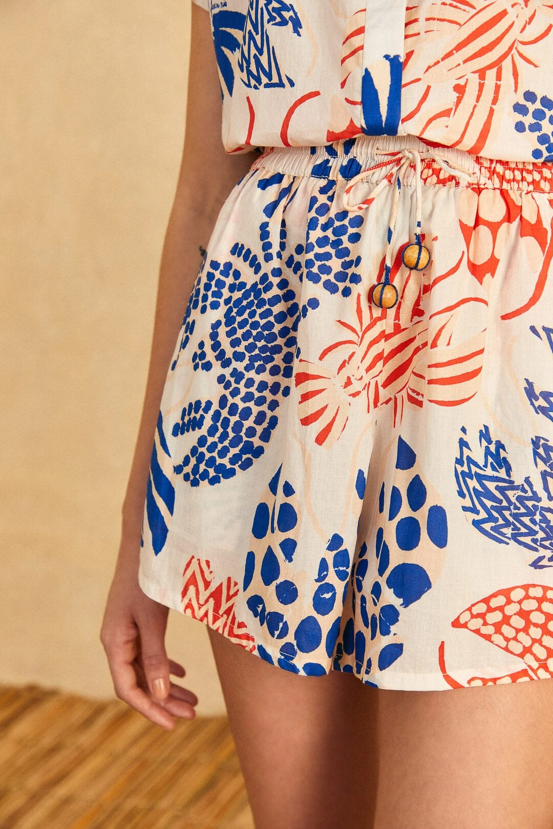 - Adjustable waistline with ties and tassels