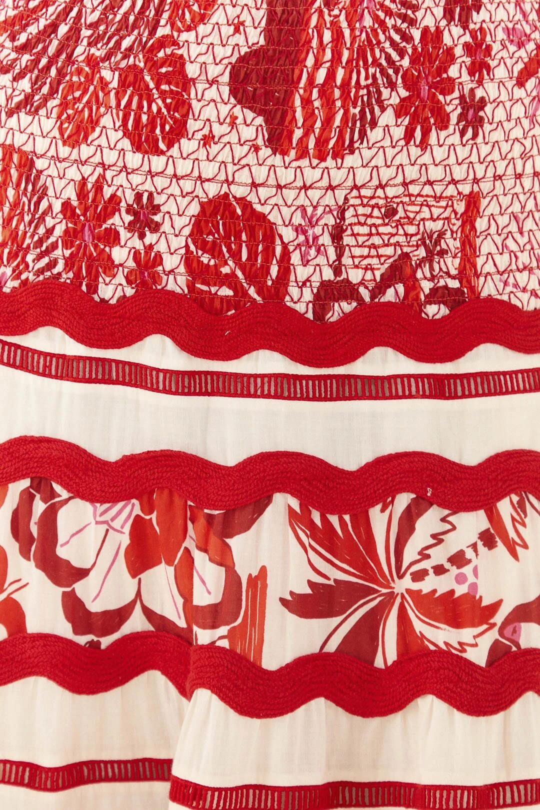 A nostalgic print that will guide you through the colorful stories of our home country, Brazil, whatever the weather! The Off-White Rio Tiles Midi Skirt will embrace you and your joyful plans with its effortless silhouette, smocked waistline, cute details, and the perfect length to reintroduce your skin to the sun. Invite the Off-White Rio Tiles Crop Top, your bright FARM Rio Shoes, and artisanal accessories to complete your look and let the romantic accent walk you through a solar season <3