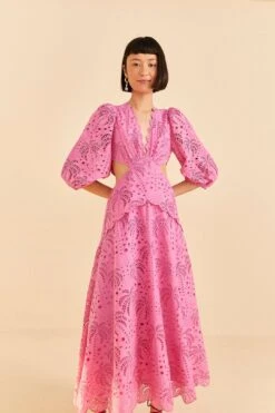 Tonal dressing is having a moment, so come find your Summer color in the Pink Cut-out Short Sleeve Midi Dress. It features a standout open waistline, a plunging neckline, and WOW sleeves for that forever bold impression. Make an even more extraordinary statement by bringing fresh shoes to join your whatever-the-plan look.