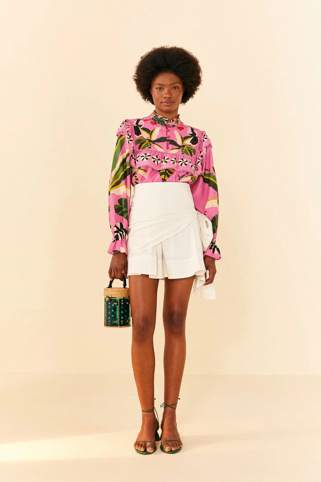 Feel good in your own skin in this effortless wardrobe staple. The Pink Leopard Forest Blouse brings nature-inspired elements and vibrant colors to brighten up your plans, from friends’ brunch to fun nights (and all cool situations in between!). It features cute buttons, lace, and ruffles to match pretty much all your bottoms (mixing similar color palettes is the key!). Your bold shoes are also invited to complete the look, and you might want to take that colorful bag for a stroll throughout solar days 🙂