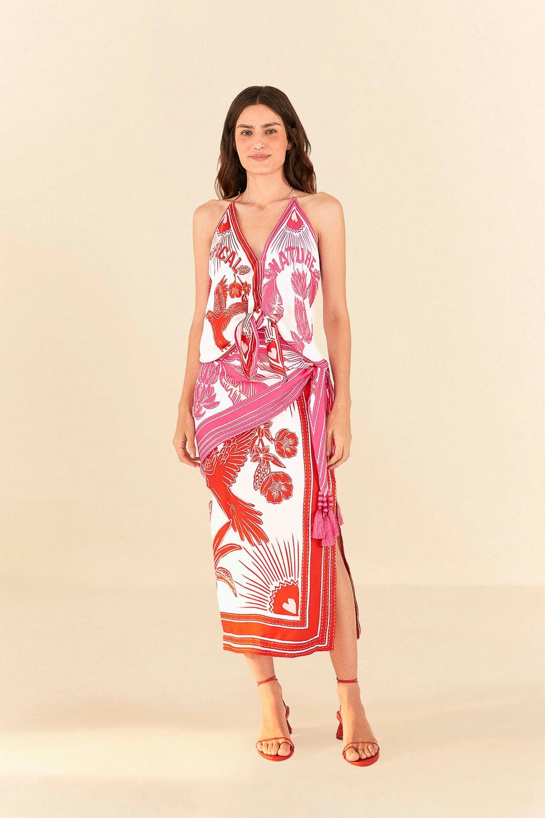 How tropical (and unique!) can a fave be? The Tropical Dream Lenzing™ Ecovero™ Viscose Midi Skirt is definitely a fresh example! It has an easy fit with tassels and a jaw-dropping slit, and the must-have print makes it look like your next wear-on-repeat staple. Mix it with crop tops (the Tropical Dream Lenzing™ Ecovero™ Viscose Halter Blouse is THE match!), cool sandals, and your carefree energy 🙂